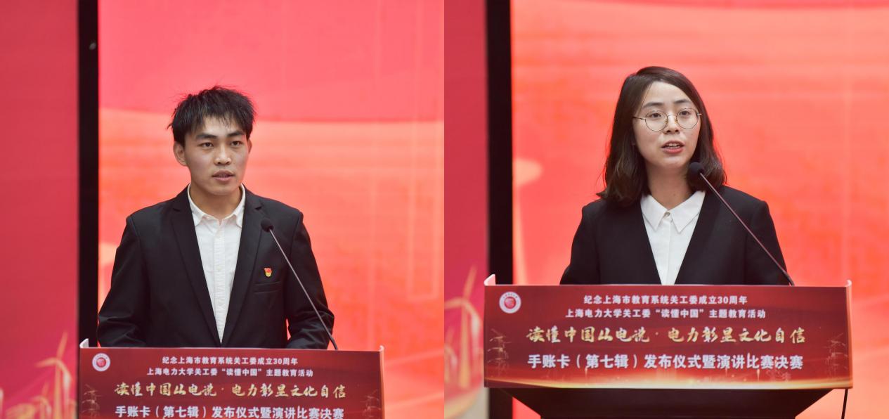在全场热烈的掌声中,宋来和于美华为手账卡揭幕,上海电力大学“读懂中国从电说·电力彰显文化自信”手账卡(第七辑)正式发布。