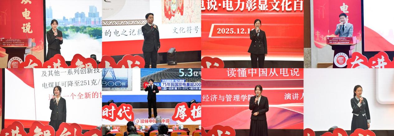 随后,2025年“读懂中国从电说·电力彰显文化自信”演讲比赛决赛正式开始,由人工智能学部辅导员李骁主持。7位选手紧扣“电力彰显文化自信”核心主题,以多元视角勾勒中国电力发展脉络、深挖文化底蕴。他们或以“电说中国”破题,解锁电力背后的文化密码;或追溯五千年文明根脉、传递薪火相传的精神力量,诠释电力与文化的深度交融;或聚焦青年担当与追光之路,彰显电力人赓续奋斗的精神传承;选手们或结合实践、或追溯文脉,以小见大勾勒电力发展图景,为听众呈现了一场兼具专业深度与文化温度的视听盛宴。