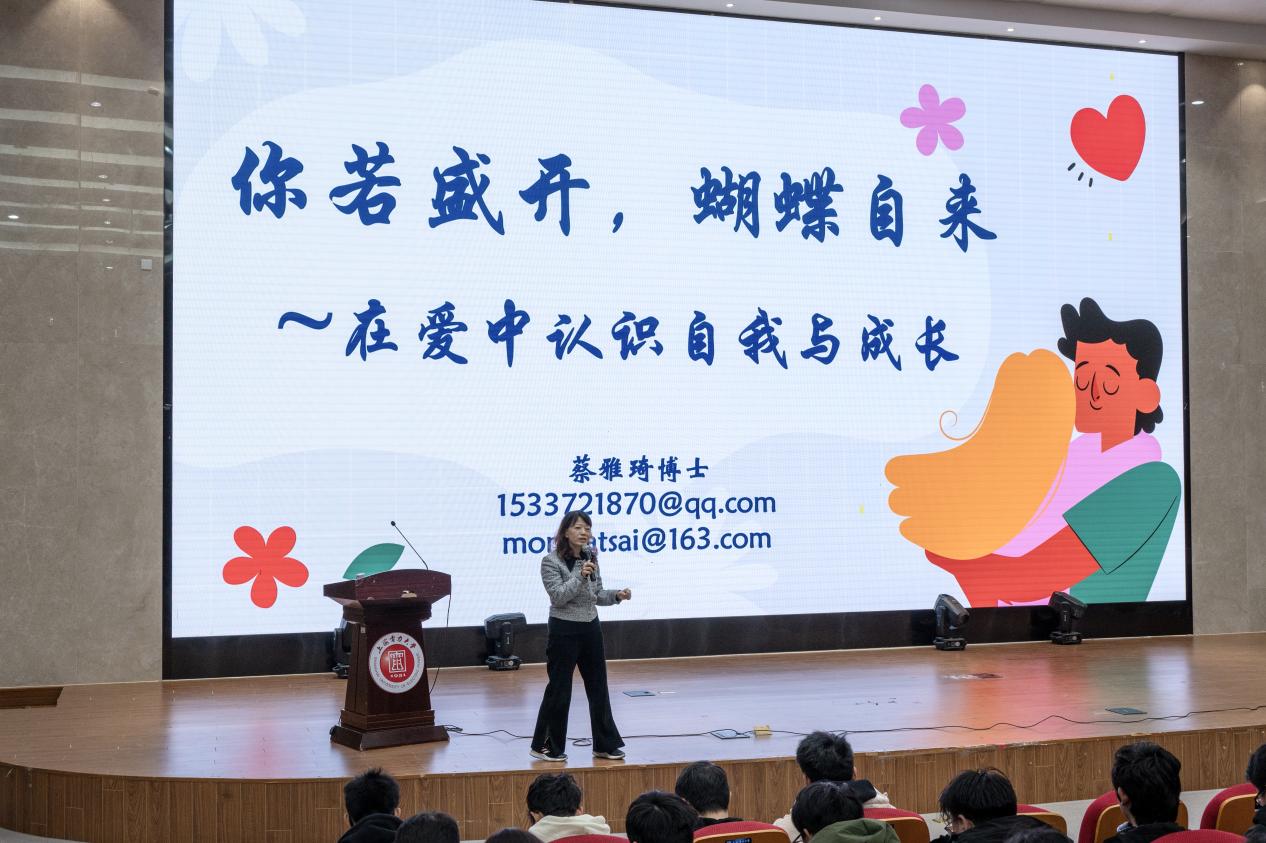 作为拥有丰富心理健康教育工作经验的心理咨询师,蔡雅琦博士围绕爱情的科学认知、生命早期亲密关系的影响、亲密关系中的依赖平衡以及爱与成长的辩证关系等核心内容,蔡雅琦博士展开深入阐释。她用贴近校园生活的案例、专业又易懂的讲解,为学生解开了人际关系中的诸多困惑,使学生明白如何用真诚与尊重搭建社交桥梁,如何用理性与包容化解矛盾,从树立“以爱为名、相互成长”的恋爱观,到坚守情感中的自我边界与底线,每一个知识点都干货满满,帮助同学们以更理性的视角看待情感,在与人相处中学会成长,在爱与被爱中成就更好的自己。同学们纷纷表示,通过此次讲座,不仅系统了解了心理健康相关知识,更深刻认识到亲密关系与自身价值的内在联系,学会了如何在情感中保持自我、实现成长,心理韧性与综合素质得到进一步提升。以“什么是爱情”这一贴近青年学生的话题为切入点,用幽默鲜活的现实案例拆解亲密关系的本质。讲座中,她打破传统授课模式,多次走下讲台与同学们互动交流,认真倾听大家对情感关系的困惑与思考,现场氛围热烈融洽。