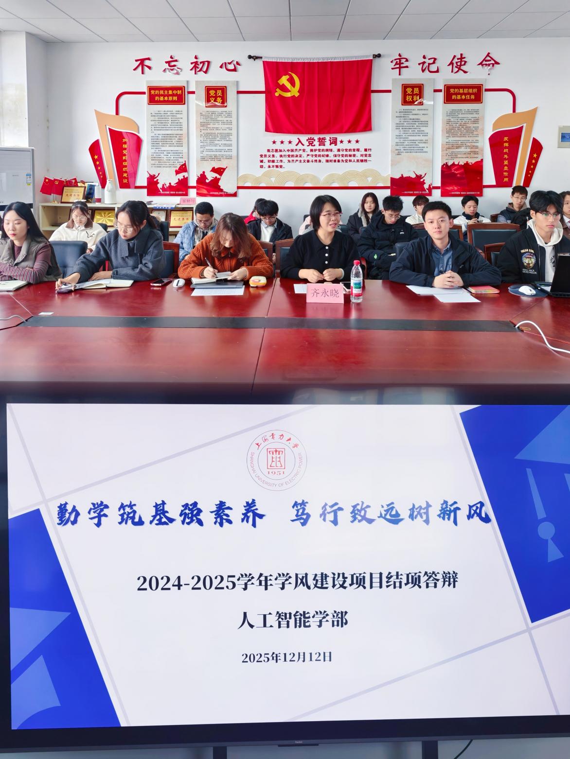 为深入落实立德树人根本任务,扎实推进学风建设提质增效,检验班级学风建设项目实施成果,进一步激发学生学习的积极性与科学性,营造崇学、善学、乐学的优良育人氛围,1212日下午,人工智能学部开展2024-2025学年班级学风建设项目结项答辩活动,学部党委副书记齐永晓,学风专项工作负责人李骁及相关辅导员出席,各立项班级学生代表参加答辩。